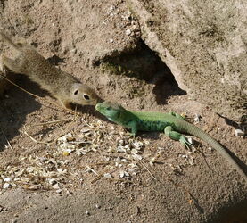 Momentan wird diese Anlage von Zieseln, Perleidechsen, Alpensteinhühnern, Scheltopusik, Griechischen Landschildkröten, Europäischen Sumpfschildkröten und Breitrand Landschildkröten bewohnt.