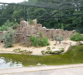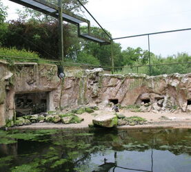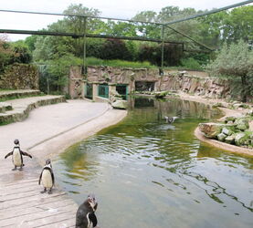 2004 eröffnete die 800m² große und 7m hohe Seevogel-Voliere mit diversen Kunstfelsen. Bewohnt wurde sie zum damaligen Zeitpunkt von 16,14 Humboldt- Pinguinen, 12,14 Inka-Seeschwalben und 3,3 Chile-Krickenten. Durch zwei Schleusen ist die Anlage begehbar und nur durch die zentral angelegte Wasserfläche (im Mittel 5m breit und 1,60m tief) sind die Besucher von den Tieren getrennt, was nicht heißt das die Tiere von den Besuchern getrennt sind. Mit zunehmendem Besucherstrom kann man beobachten wie sich die Pinguine mit ihren Gästen vertraut machen, während die Seeschwalben den gesamten Luftraum nutzen. Ein Erlebnis für die einen, und "Enrichment " für die andere Seite. Die 4m hohe Felswand, in welche die Bruthöhlen integriert sind, bildet nicht die äussere Begrenzung der Voliere, so das die Bruthöhlen von hinten einsehbar sind. Somit konnte auch auf eine Schleuse verzichtet werden. Angebaut wurde aber eine kleine Eingewöhnungsvoliere mit zugehörigem Winterquartier für die Inka-Seeschwalben, nebst Futterküche und Technikraum. So kommen sie gut durch den Winter, wenn die Netzbespannung der Voliere zum Schutz vor Schneelast eingerollt wird. Die Anlage ist sehr schön gestaltet, reich strukturiert und auch didaktisch wurde die Anlage aufgewertet. Es gibt auch eine einsehbare Pinguinhöhle. Das 100m³ große Wasserbecken überzeugt nicht nur durch seine Fläche, Tiefe und Struktur, die dem Komfortverhalten der Pfleglinge entspricht, man kann durch die Unterwasserscheibe den Tieren auch beim Schwimmen zusehen. Besonders erwähnenswert ist auch die Filterung des Beckens, welche ausschließlich über eine großzügig dimensionierte Schilfkläranlage läuft, und das mit großem Erfolg.