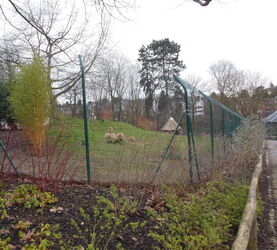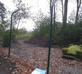 Es gibt zwei Außenanlagen für die Tiere mit insgesamt 2500 qm Fläche. Die kleinere Anlage nimmt ca. 1/3 dieser Fläche ein, sie ist durch einen Gitterzaun von der großen Anlage getrennt. Es gibt zwei Türen um diese Anlage mit der großen zu verbinden, dadurch entsteht keine Engstelle.
