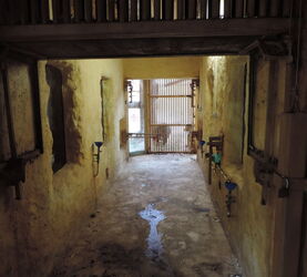 Alle Bereiche sind sehr gut einsehbar, auch wenn es in beiden Boxen/Absperrgehegen kein Licht gibt. Die Schieber haben alle verschiedene Einstellmöglichkeiten um die Breite der Öffnung fest zu legen. Alle Schieber sind manuell zu bedienen. Alle Schieber sind festgestellt sobald sie zu geschlossen sind! Alle Türen zu den Käfigen sind Gittertüren, die aus einer Banksanierung stammen. Dies gilt auch für alle Scheiben in der Schimpansen Innenanlage, auch diese stammen alle aus einer Banksanierung. Zusätzlich sind noch Glastüren vor den Gittertüren. Die Tierpflegertür zur Innenanlage ist mit keiner weiteren Tür abgesichert um den direkten Kontakt jederzeit zu ermöglichen. Alle Gittertüren sind in der Gitterbreite so, dass Schimpansen nicht mit der Hand durchgreifen können. Hochdruckreiniger, Gullis und alles, was das Tierpflegerherz erfreut, ist vorhanden. Die Wärmerückgewinnungsanlage steht in einer Ecke des Tierpflegerbereichs. Dort können auch die verschiedenen Kreisläufe der Bodenheizung gesteuert werden. Genauso, wie im Gang auch die verschiedenen Tränken befüllt werden können.