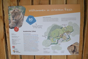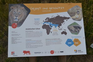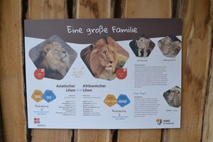 An den großzügigen Einsichtmöglichkeiten für die Besucher werden zahlreiche Informationsmöglichkeiten angeboten z.B. Schautafeln mit verschiedenen Informationen zu z.B. Lebensraum, Verhalten und Bedrohung. Außerdem steht ein Touchscreen – Monitor zur Verfügung, wo sämtliche Informationen sowie u.a. Löwengebrüll abgerufen werden kann.
