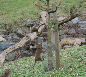 Die gesamte Anlage ist von einem ca. 2,20m hohen Zaun umringt, der direkt an den Besucherweg grenzt. Mehrfach gespannte E-Litzen und Überhang sorgen dafür, dass die Affen nicht hinaus gelangen können. Durch eine Beschilderung wird sowohl auf den Strom, als auch darauf aufmerksam gemacht, das man doch bitte NICHT füttert und weder Hände noch Gegenstände durchreicht oder hineinwirft! Mehrere Schautafeln zeigen Bilder von zerstörten Handys, Kameras und Kinderspielzeug aber auch von Verletzungen, die sich die Tiere zugezogen haben. An 2 Stellen ist der Zaun auf Hüftniveau abgesenkt um einen Gitterfreien Blick zu schaffen.