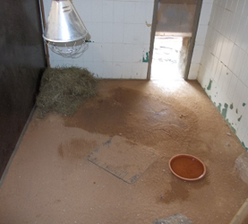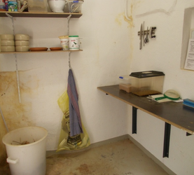 Neben dem Innenstall für die Alpensteinhühner gibt es ebenfalls eine kleine Pflegerküche, in der außer dem Werkzeug auch einige Futtermittel gelagert werden können.